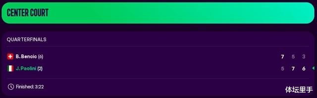 北京时间10月17日下午,WTA500宁波站首场1/4决赛在两位前八种子鲍里妮、本西奇之间打响。最终,经过3小时22分钟的马拉松苦战(第二盘耗时达到了惊人的1小时32分钟),奥运冠军本西奇先赢后输1-2遭逆转,首位4强出炉:意大利名将鲍里妮!