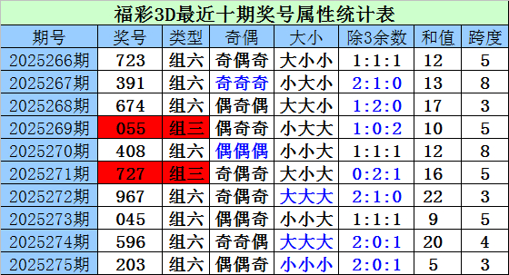 上期回顾:上期开奖奖号为203,类型:组六,偶偶奇,小小小,2:0:1,和值5,跨度3。