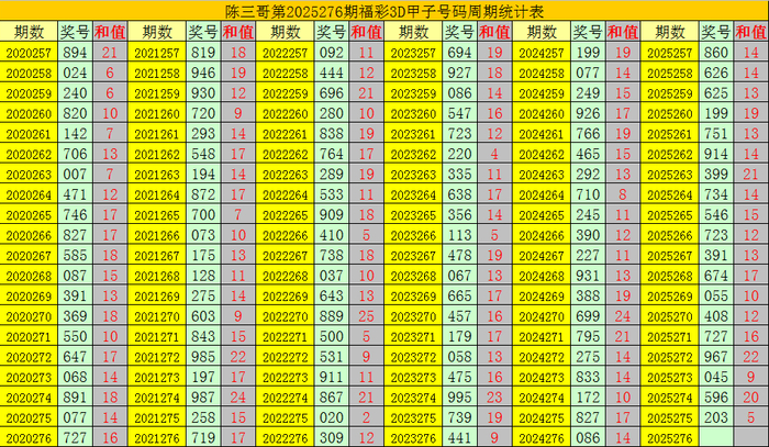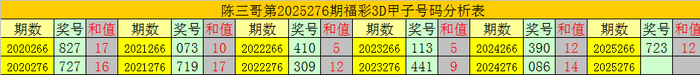 陈三哥3D第2025276期甲子号分析: