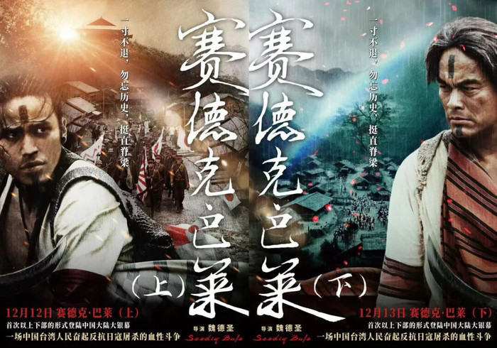 中国台湾抗日口碑佳作《赛德克·巴莱(上)》《赛德克·巴莱(下)》将于12月12日、13日在大陆重映,以接力上映的形式与观众重逢。