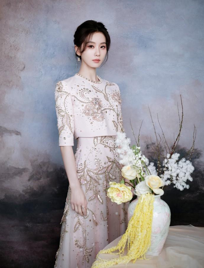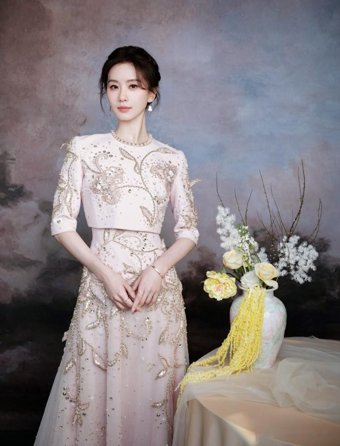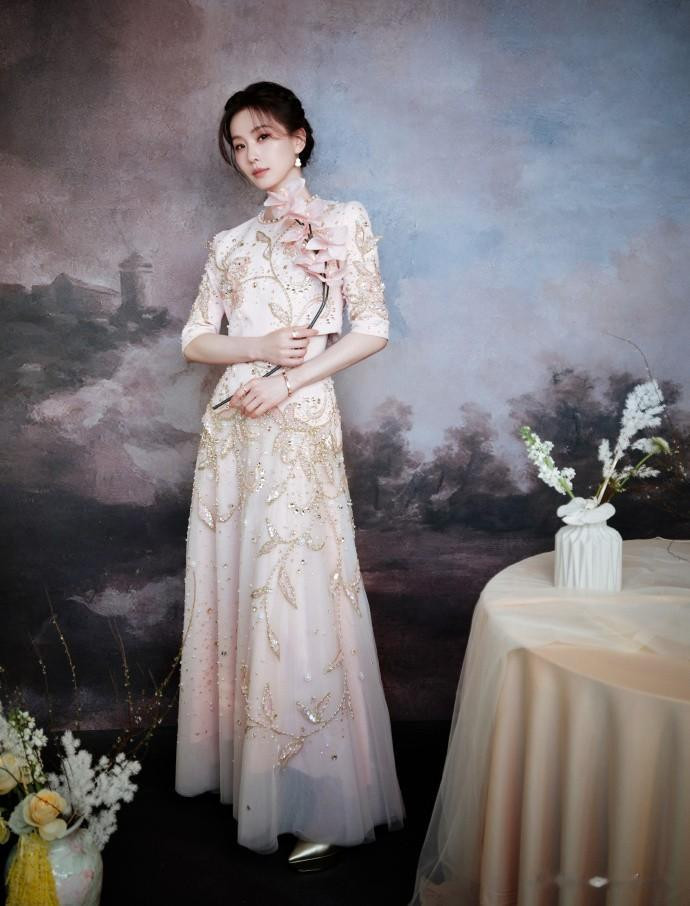 再看那身粉色高定礼服,线条顺得像一汪春水,轻轻巧巧的,没有多余的装饰,裙摆垂下来的弧度也好看,简约里全是精致。这种“少即是多”的设计,跟白瓷妆的气质简直是绝配。现在大家不都爱说“静奢风”嘛,说白了就是不咋张扬,但质感和气质摆在那,不用靠大logo撑场面。刘诗诗这一身就是这样,把“肤若凝脂”的古典味儿,和现代的静奢感揉到一块儿了——这才是真的高级,不是靠牌子堆出来的。